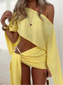 Showcase effortless style with our Cleo Lemon Sarong Set, the perfect addition to your holiday wardrobe. Our Cleo set is designed for warm, sun-soaked days and evenings by the beach. Featuring an off-the-shoulder top that offers a relaxed yet chic look, paired with a matching sarong skirt that wraps gracefully around the waist, this set transitions seamlessly from day to night. Whether you’re enjoying a sunset dinner or lounging poolside, the Cleo Lemon Sarong Set combines comfort and style, making it the ultimate choice for a sophisticated yet laid-back holiday outfit.